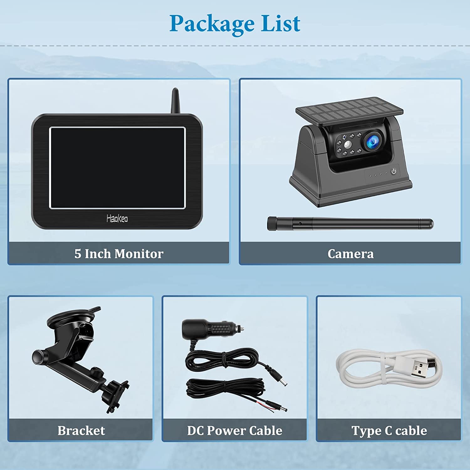- 【9000mAh rechargeable battery】 This wireless backup camera system can work continuously for 18 consecutive hours and is equipped with a solar charging board. When it is completely exposed to the sun, it can work longer. Meet the needs of long-distance travel and reduce the number of charging times.”