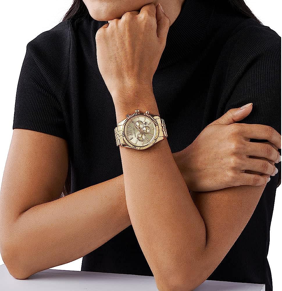 Designed with the aspirational man in mind, our Lexington watch brings sleek and streamlined to a whole new level. The beveled gold-tone stainless steel bezel and bracelet strap provide tactile texture, while the date function and chronograph dials complete a dynamic piece. Whether you’re wearing it en route to a business meeting or boarding a flight to the Maldives, the effect is refined for all manner of occasions.