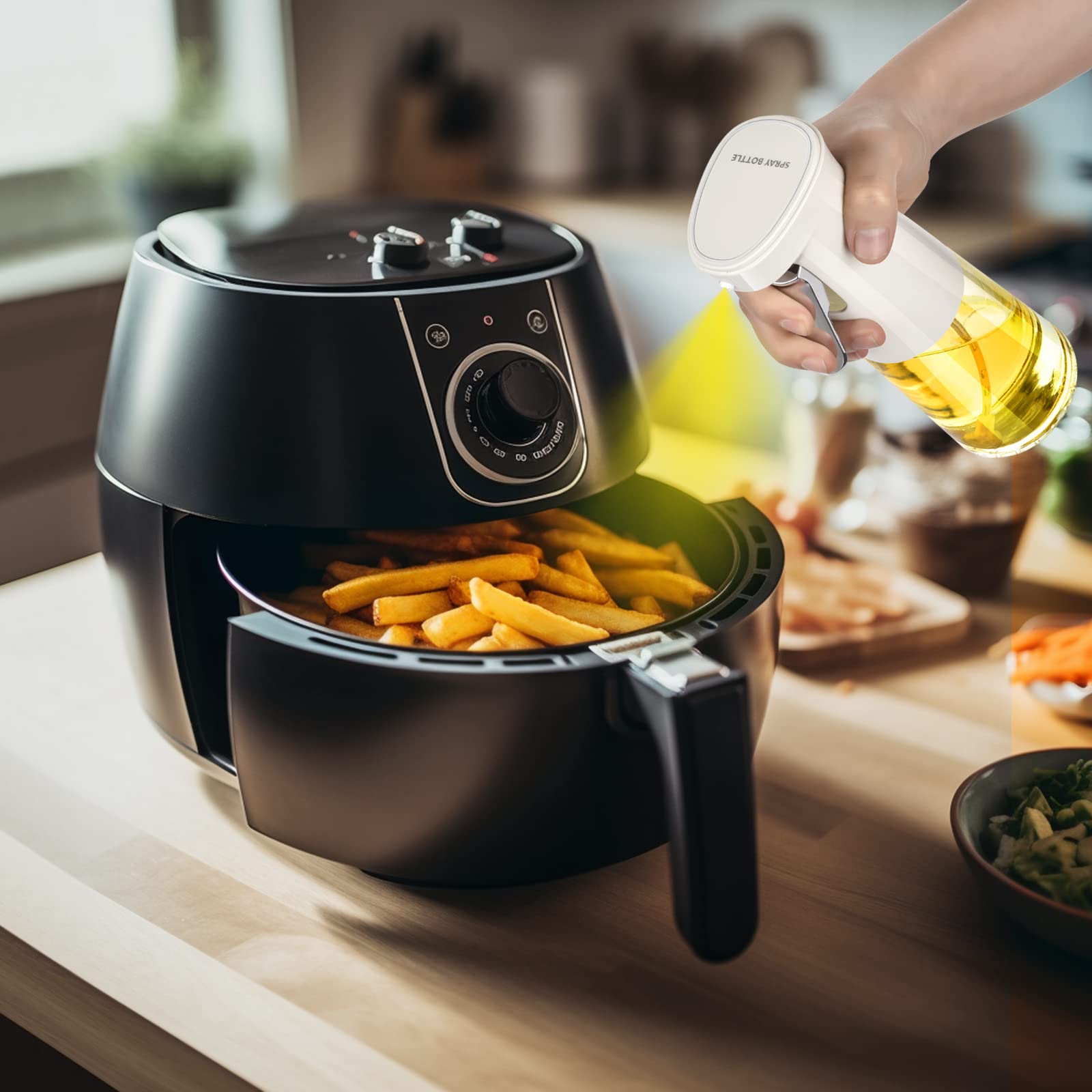 • [Application]: The oil sprayer for air fryer can not only be applied to olive oil, but also widely used for filling avocado oil, soy sauce, coconut oil, corn oil, vinegar, and more. Widely used in baking, cooking, air fryer.
