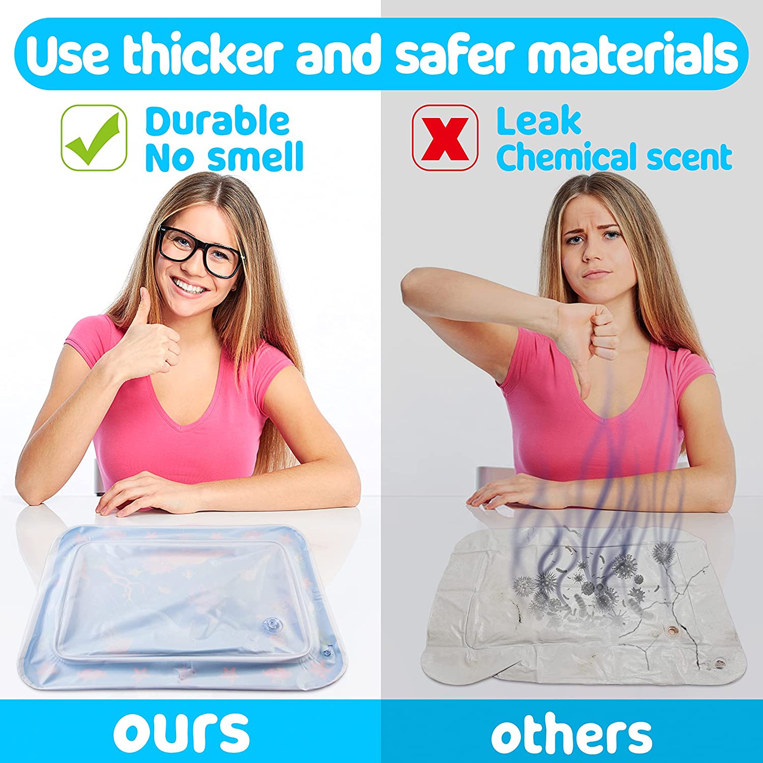 - 【High Quality and Strict Inspection】: Our baby water play mats are made of heavy PVC material which is strong, durable, non-toxic and BPA free . Each baby water mat has passed a strict quality inspection before leaving factory to ensure that it will not leak water or leak air . If you encounter a leaking mat, please contact us immediately, and we will replace it for you free of charge
